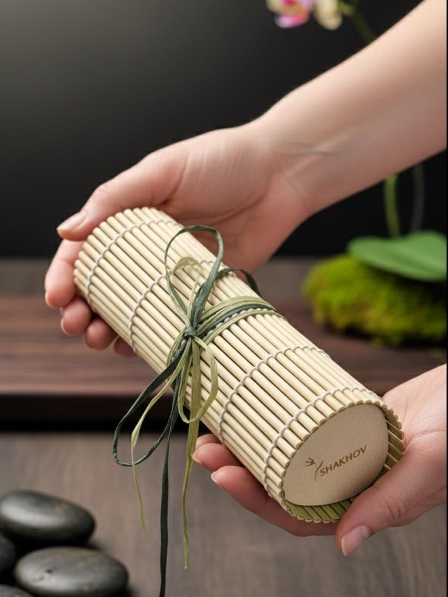 Immerse yourself in calm and harmony with SHAKHOV’s minimalist “Burning Stones” set — 5 handcrafted candles in a natural bamboo box.