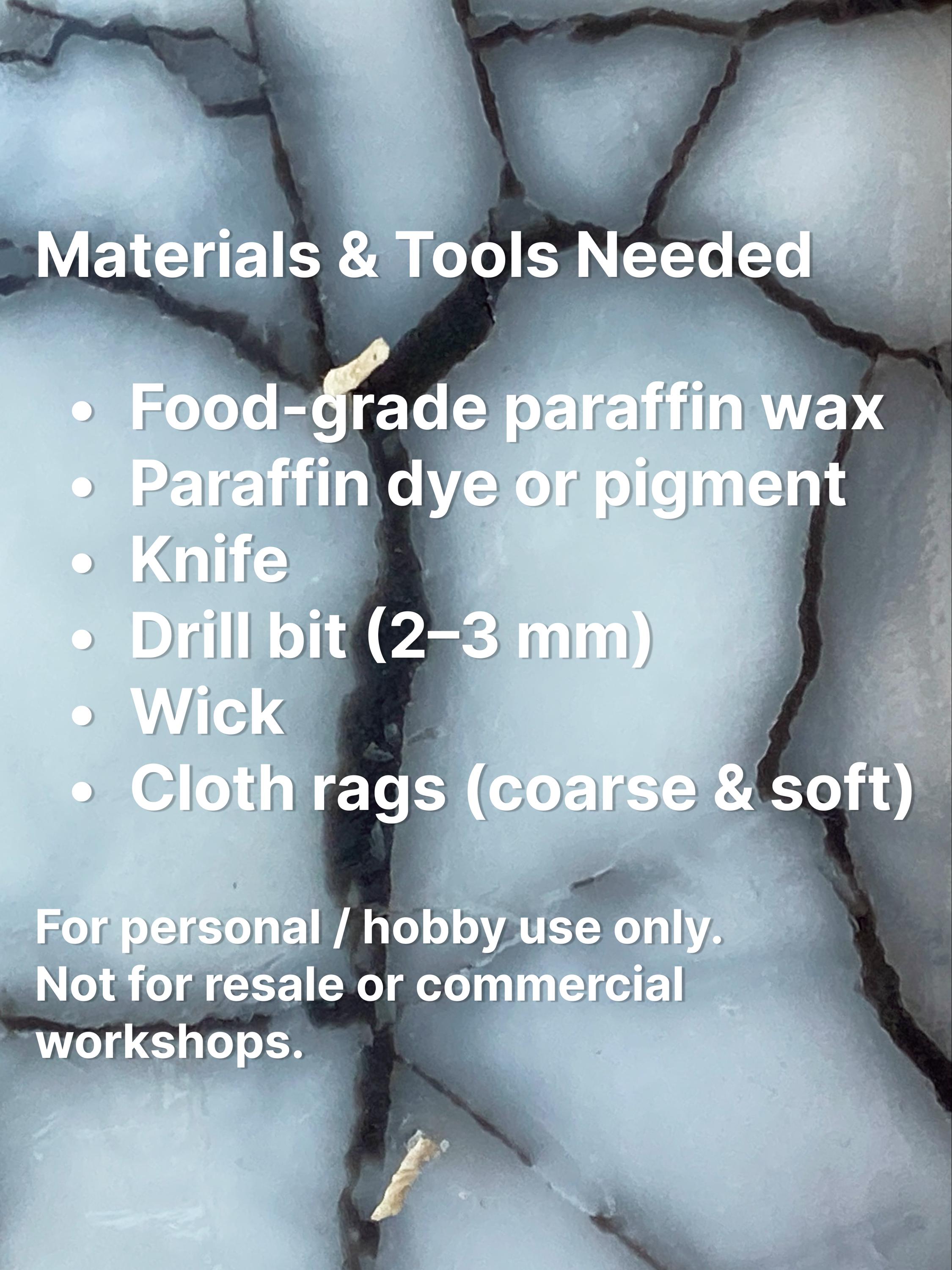 Learn how to make stone‑effect candles with this DIY tutorial by Anton Shakhov. This digital download includes a full HD video walkthrough and a detailed PDF guide that teaches every step of creating rock-style candles. Ideal for candle hobbyists, DIY makers, and creative entrepreneurs.